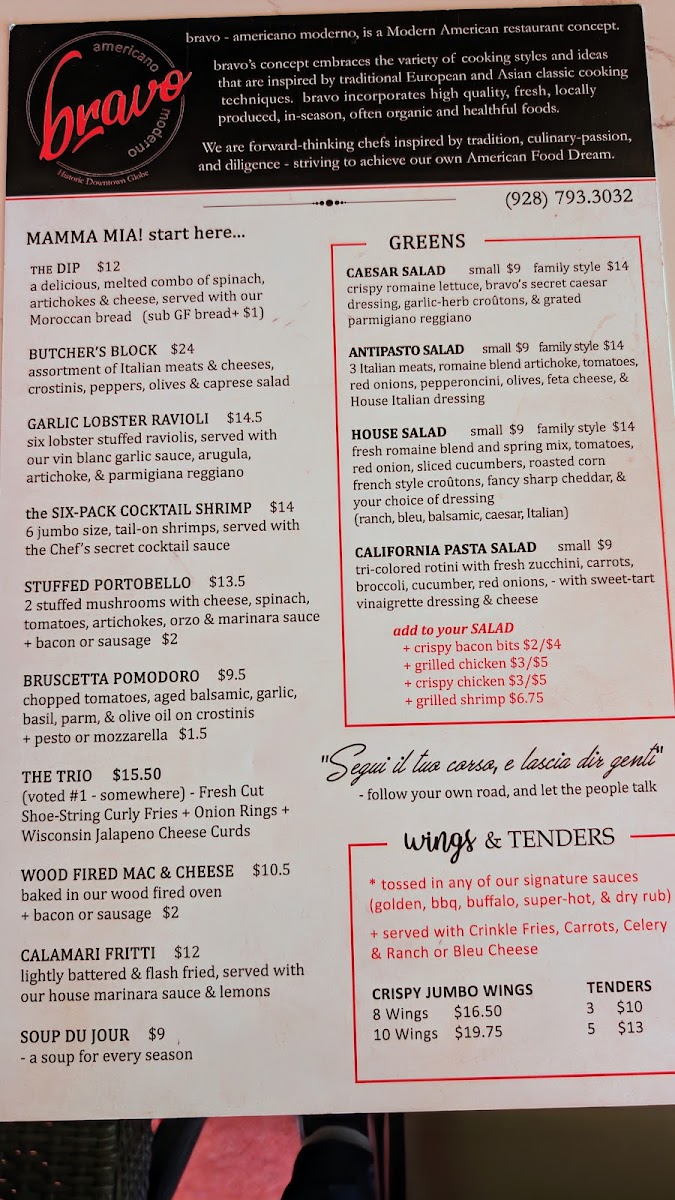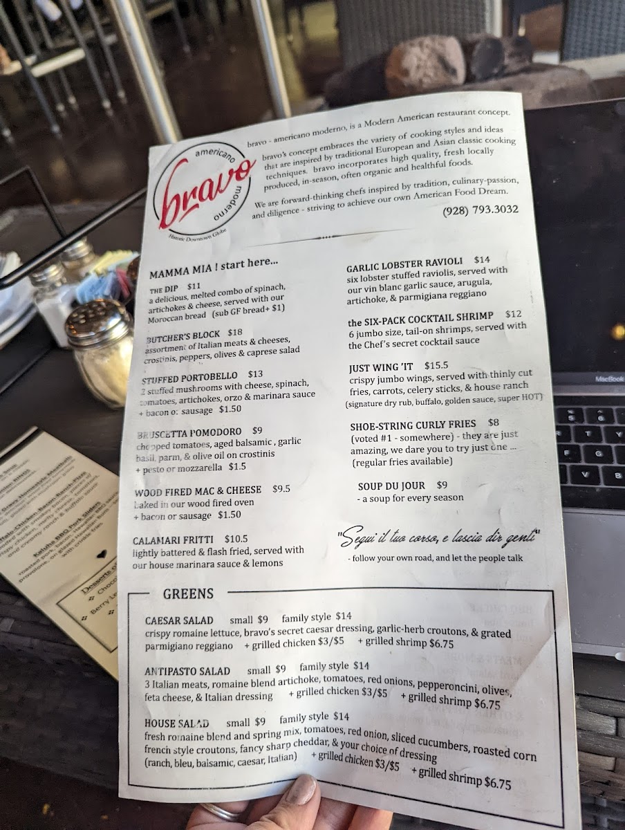 When you step into Bravo Americano Moderno, you’re in for an unforgettable dining experience. Located at 333 N Broad St, Globe, AZ, this cozy spot blends modern American flavors with a touch of classic charm. The Bravo Americano Moderno Menu is a perfect reflection of the restaurant’s inventive spirit, offering a variety of mouthwatering options. From their fresh salads to hearty entrees, each dish is crafted with care, showcasing bold flavors and high-quality ingredients. Whether you’re craving a delicious steak or something lighter, there’s something to satisfy every palate. Every bite feels like a celebration of American cuisine, with a modern twist that makes it unique. Come hungry and get ready to discover your new favorite dish here!